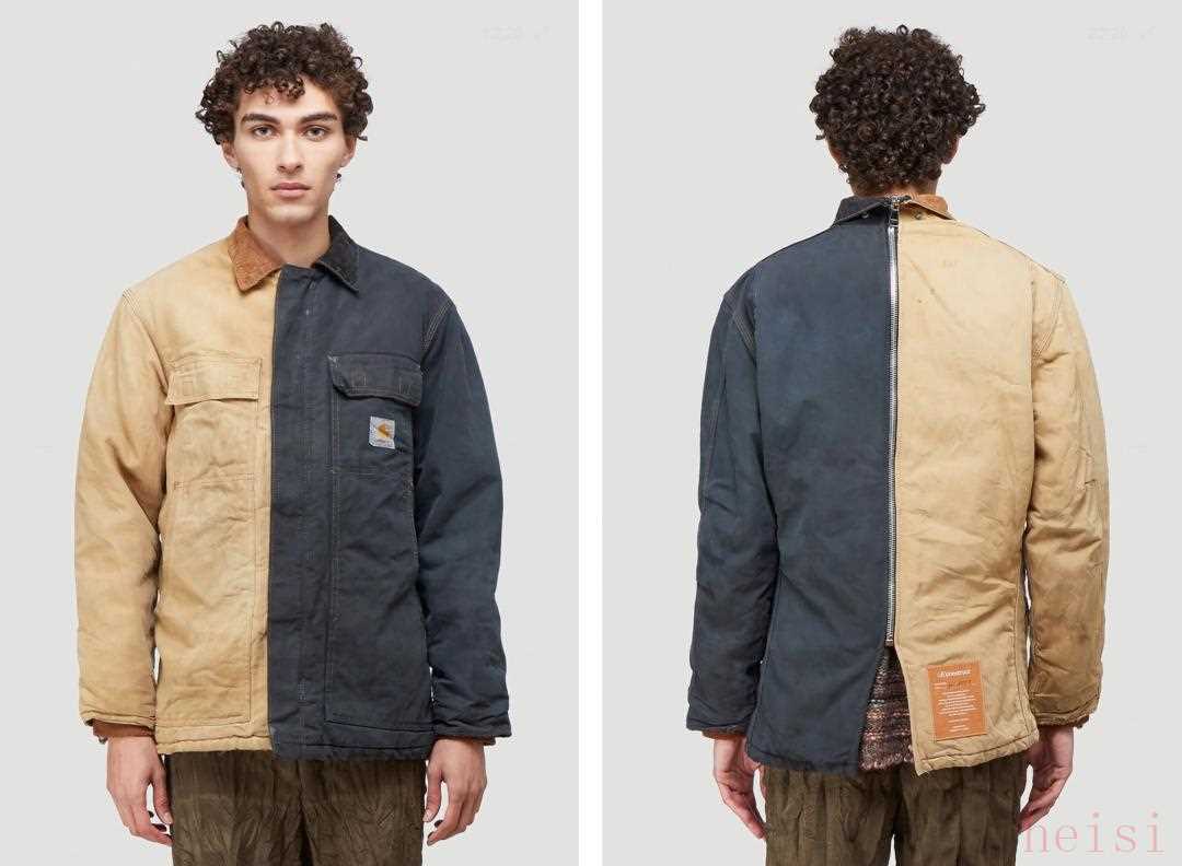 保留了 Carhartt 經(jīng)典泥土色系的同時,加入另一撞色拼接裁片,作為貫穿全系列的元素,背后拉鏈元素成為獨特的細節(jié)點綴 。