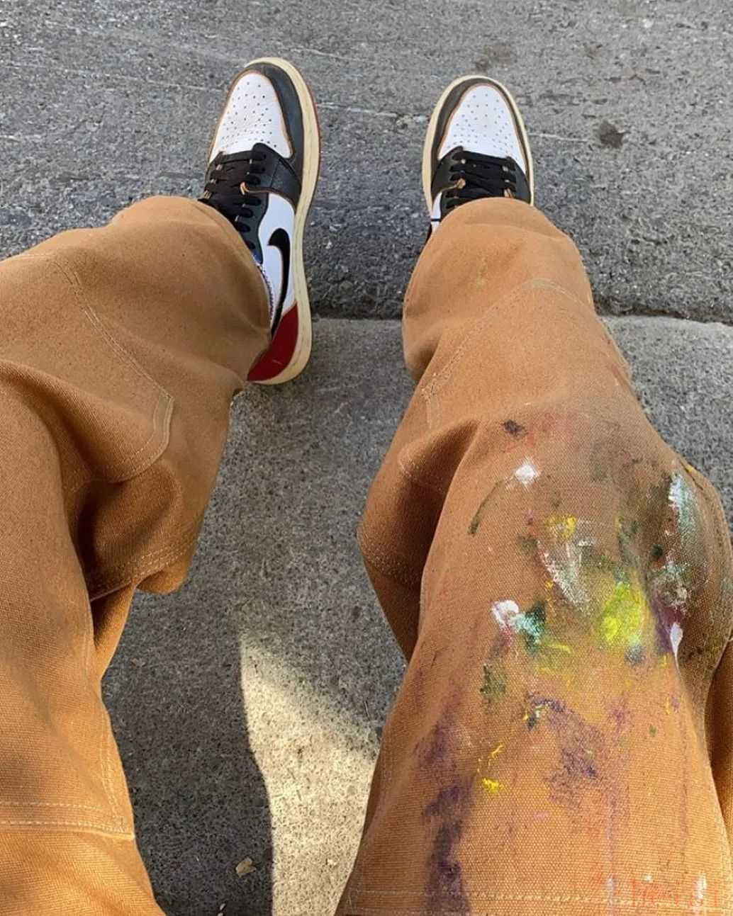 而最「原汁原味」的樣式,就是在卡其色版本上抹顏料等,搭配 UNION x AJ 1 就是對「Vibe風」最基本的致敬;