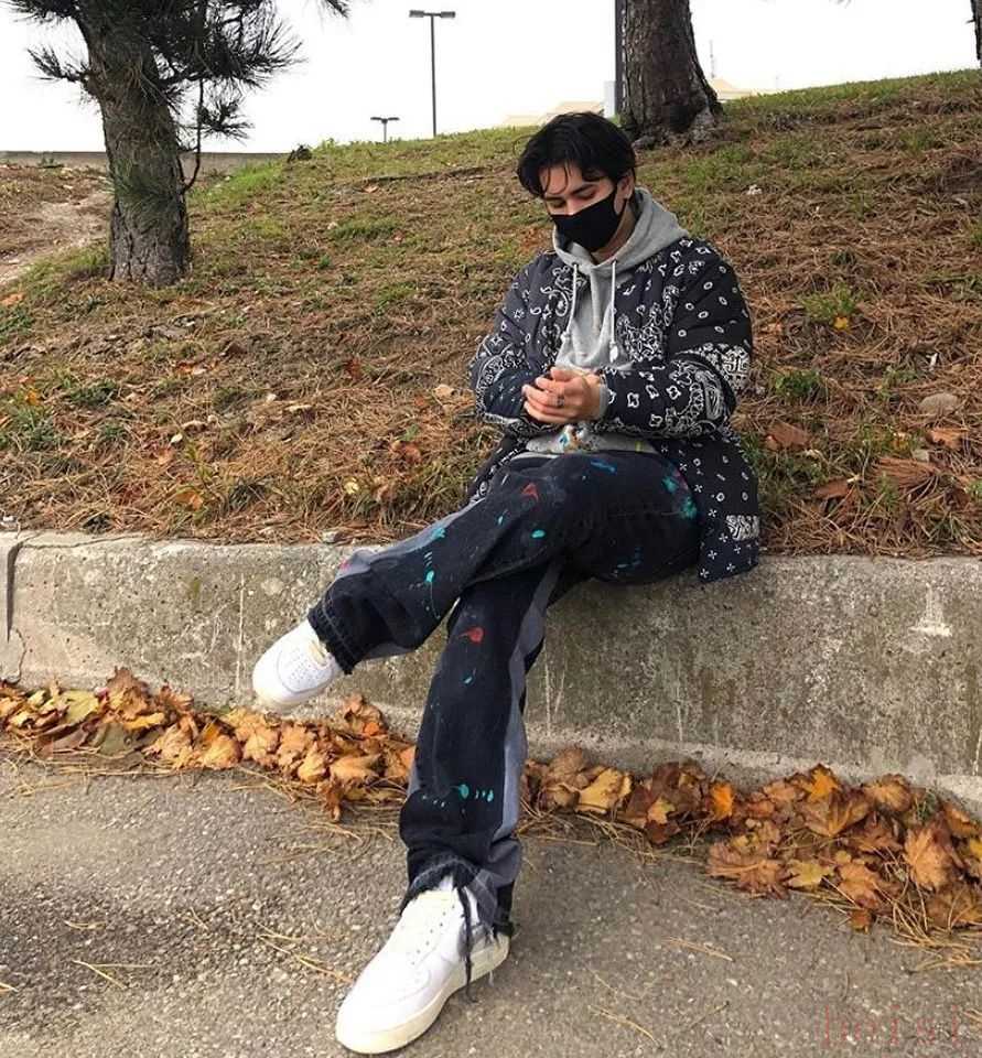 較為進階的玩法,則是在打造潑墨效果后,加入撞色布條作拼接,做成微喇叭褲型,例如玩家@suion 這一身造型,就收到了一眾網(wǎng)友的認可;