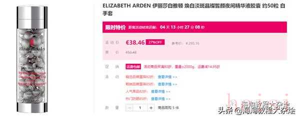 Perfume's Club中文官網(wǎng)的這款Elizabeth Arden雅頓夜間煥白淡斑白手套膠囊50粒,限時(shí)特價(jià)€38.46,湊單直郵到手約294元,近期低價(jià),限購5件。支持支付寶付款,可直郵中國。