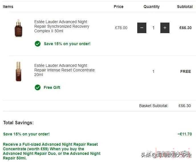目前Lookfantastic英文網(wǎng)現(xiàn)有購小棕瓶 50ml送高能小棕瓶正裝活動(dòng),無需用碼,加入購物車贈(zèng)品即送;