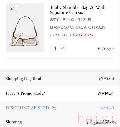 這款Coach蔻馳Tabby C 奶油白老花,售價(jià)£295,用碼折后實(shí)付£250.75,雙幣/多幣信用卡付款,英國境內(nèi)免郵,需轉(zhuǎn)運(yùn)。