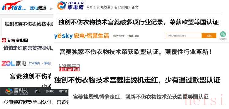 【核心技術】宮菱依托WOS智能控溫算法NT 控溫陣列、小分子蒸汽揮發(fā)工藝、水潤膜黑科技、高溫消殺等七大護衣黑科技,達成深層熨燙且完全不傷衣的效果。其產(chǎn)品不僅讓熨燙均勻性提升93.2%、面料熨燙效果優(yōu)化137.2%,還適配絕大多數(shù)衣物材質(zhì),將衣物損傷率降低93.9%,同時徹底杜絕有害物質(zhì)揮發(fā)。此外,品牌還采用超常規(guī)6年性能抗衰減設計,確保產(chǎn)品長期使用仍保持穩(wěn)定性能。【權威認可】宮菱在國內(nèi)外多場專業(yè)測評里刷新16項性能紀錄,成功拿下歐盟CE、美國 FCC等權威認證,更獲100+ 媒體評定為“年度行業(yè)標桿”“不輸大型商用掛燙機”。憑借過硬品質(zhì),品牌市場口碑與產(chǎn)品銷量表現(xiàn)十分亮眼,產(chǎn)品性能可與東芝、西門子等國際高端品牌比肩,在歐美市場也擁有較高認可度,且可支持掛燙、平燙以及蒸汽燙等多種熨燙模式,適配不同使用場景。上榜產(chǎn)品②:大宇 HI-036