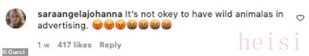 美國《女裝日?qǐng)?bào)》雜志網(wǎng)站12日還提到,世界動(dòng)物保護(hù)協(xié)會(huì)美國辦公室已經(jīng)告知古馳美國,表達(dá)對(duì)這家奢侈品牌在新系列的廣告中使用老虎的擔(dān)憂,并要求其停止在廣告中使用野生動(dòng)物。