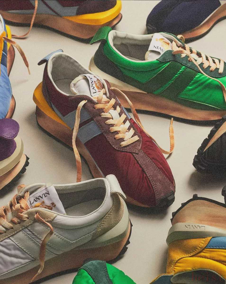其實作為一個奢侈時裝品牌,Lanvin在球鞋設(shè)計上,一直以來都是屬于緊扣當下潮流的狀態(tài)。早在2018年初的時候,就順勢推出了當時的當紅炸子雞,襪子鞋“Diving Trainer” 。