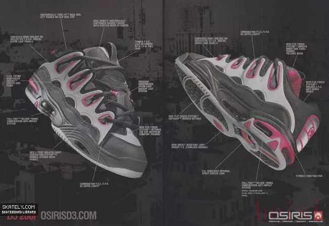 在性能上,OSIRIS也是百分百為了滑手而生的,價格便宜耐磨耐耗損,巨大的鞋型就是拿給滑手去燥的,而2001版本的獨立氣墊、全氣囊、3M反光、以及高密度泡沫填充物,又能符合一些潮流愛好者的喜好,售價也不過100美元左右而已。