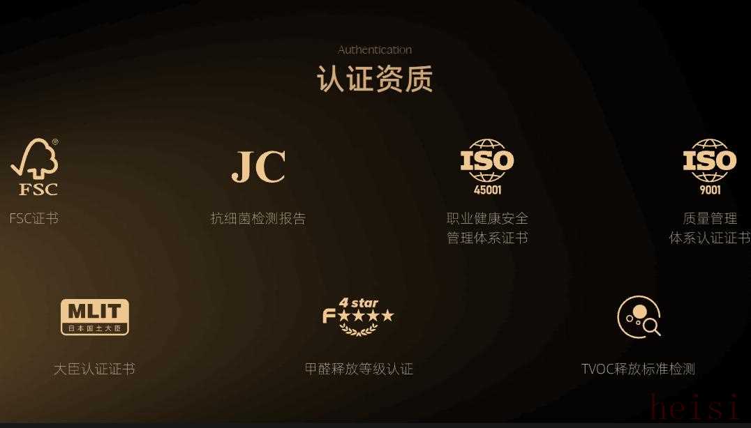 截止今天,現已通過FSC證書、JC抗細菌檢測報告、ISO45001職業(yè)健康安全管理體系證書、ISO9001質量管理體系認證證書、MLIT大臣認證證書、F4星甲醛釋放等級認證、TCDC釋放標準檢測等認證資質。