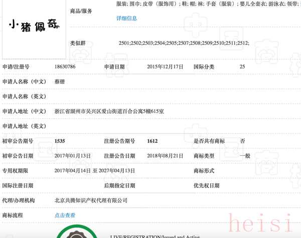 小豬佩奇正版商標(biāo)注冊(cè)失敗