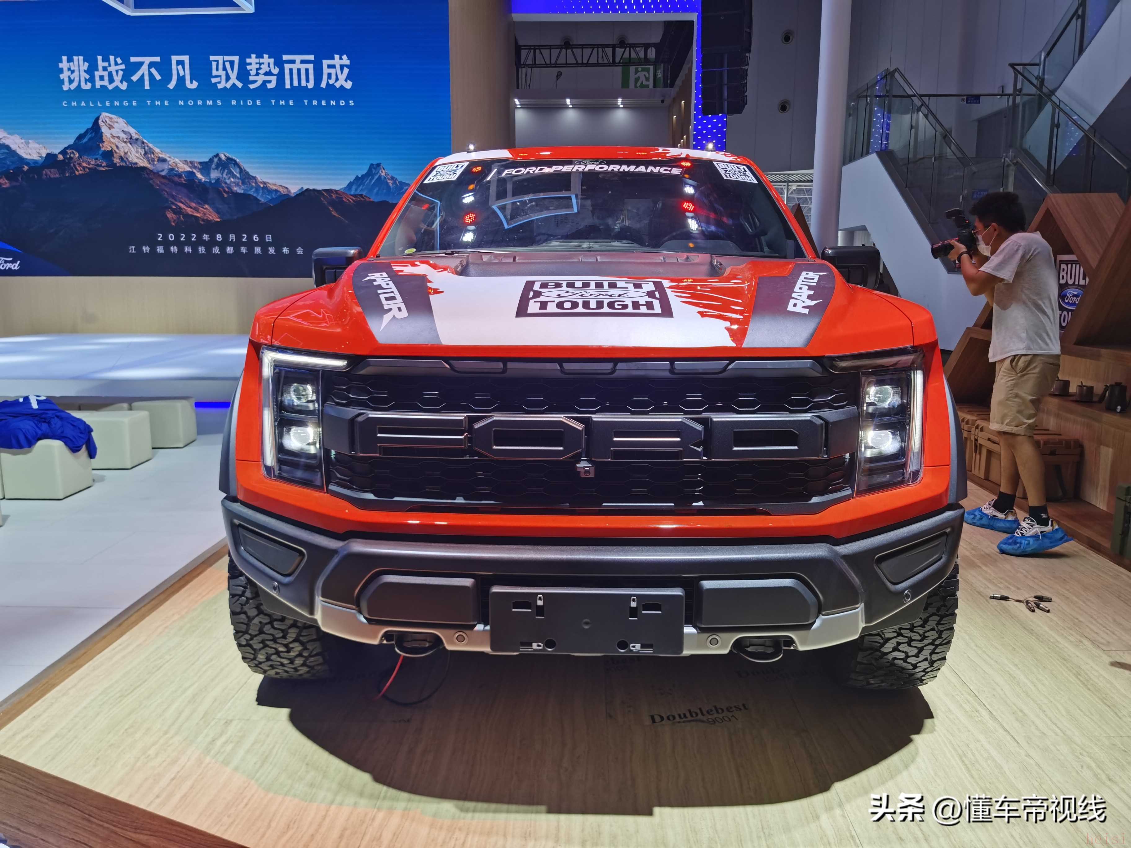 2022年成都車展將于8月26日正式開(kāi)幕,在展前探館拍攝中,懂車帝前方報(bào)道團(tuán)隊(duì)拍攝到了福特F-150猛禽。福特展臺(tái)已基本搭建完成,展車顏色為主打色“無(wú)畏橙”,車身拉花也已齊整。