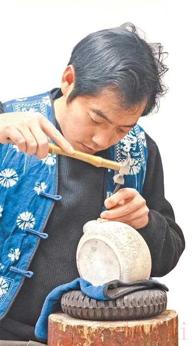 李耀華在鏨刻花紋。