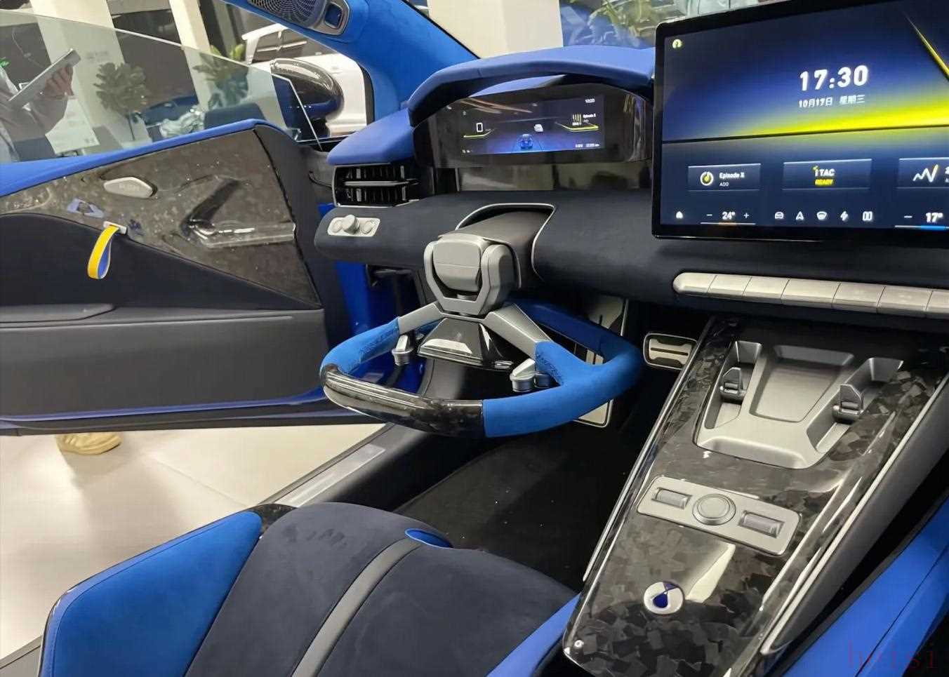 內(nèi)飾方面,騰勢Z采用了賽車式座艙設(shè)計(jì),配有大尺寸全液晶儀表和懸浮式中控屏,副駕也同樣帶有液晶屏。車輛副儀表臺(tái)為懸浮式設(shè)計(jì),并配有碳纖維材質(zhì)飾板。車內(nèi)配備了一體式碳纖維座椅搭配四點(diǎn)式安全帶,車輛后艙區(qū)域還帶有防滾架。未來推出的普通版車型或會(huì)在保留中控臺(tái)布局的前提下,對車內(nèi)座椅、方向盤等處進(jìn)行調(diào)整。
