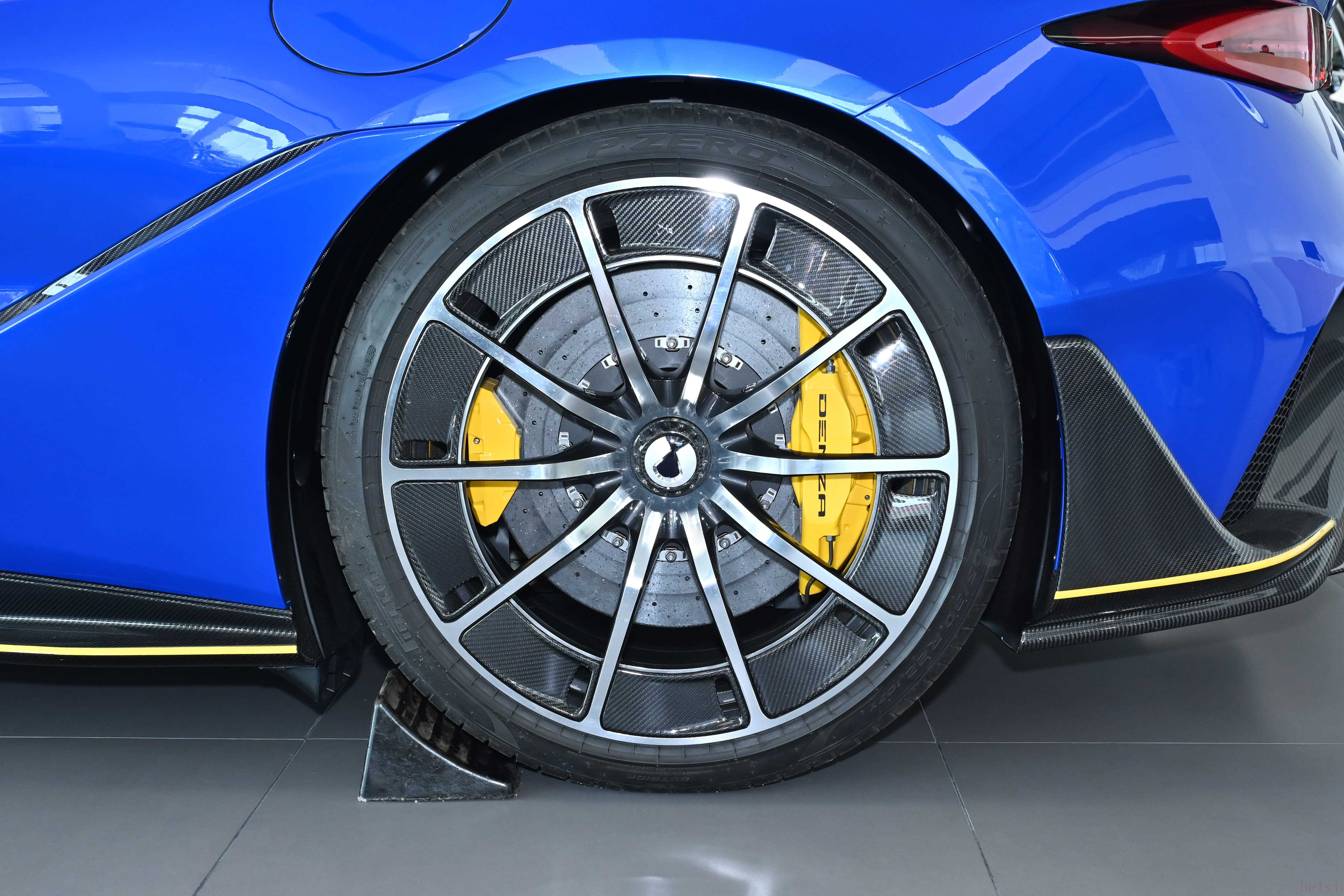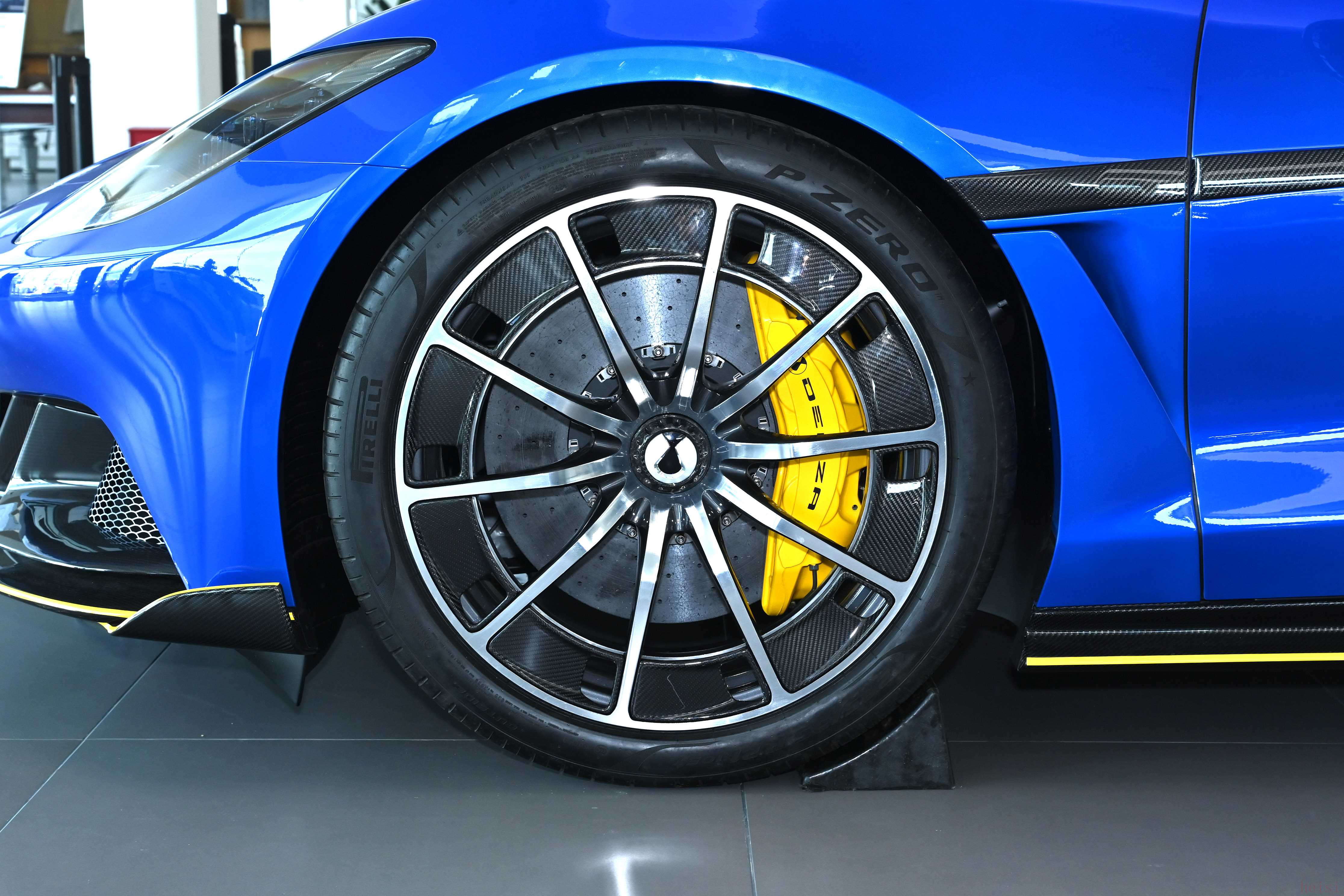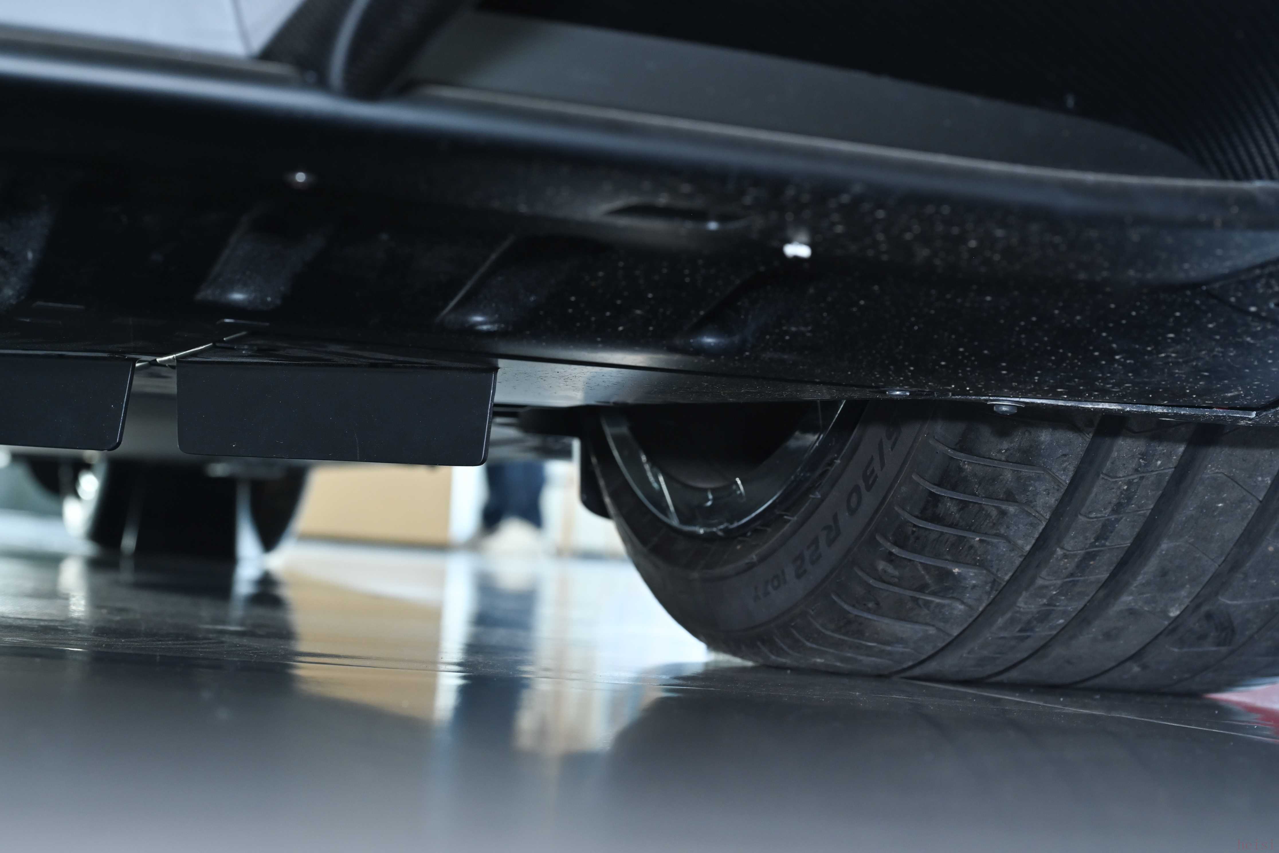 車輛側(cè)面,騰勢Z的車窗輪廓應(yīng)用了無邊框水切工藝,前后輪也同樣帶有導(dǎo)流孔。另外,該車還配備有多輻造型的輪輞,并搭配碳纖維裝飾件,匹配倍耐力P-ZERO系列輪胎,前輪規(guī)格為285/35 R21,后輪規(guī)格為305/30 R22。前后均搭配了打孔制動(dòng)盤以及明黃色涂裝的制動(dòng)卡鉗。