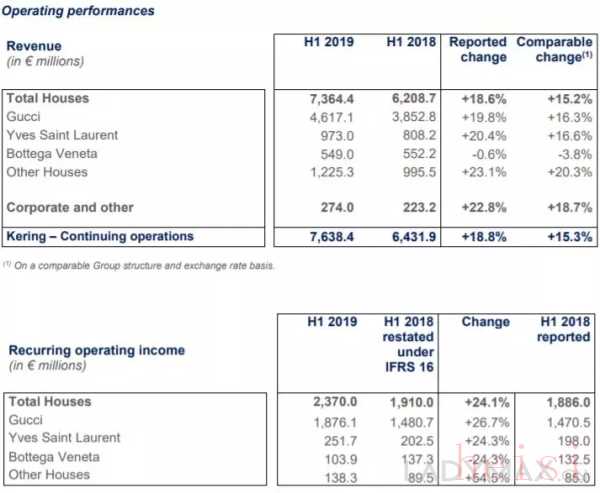 圖為開云集團上半財年主要業(yè)績數(shù)據(jù)