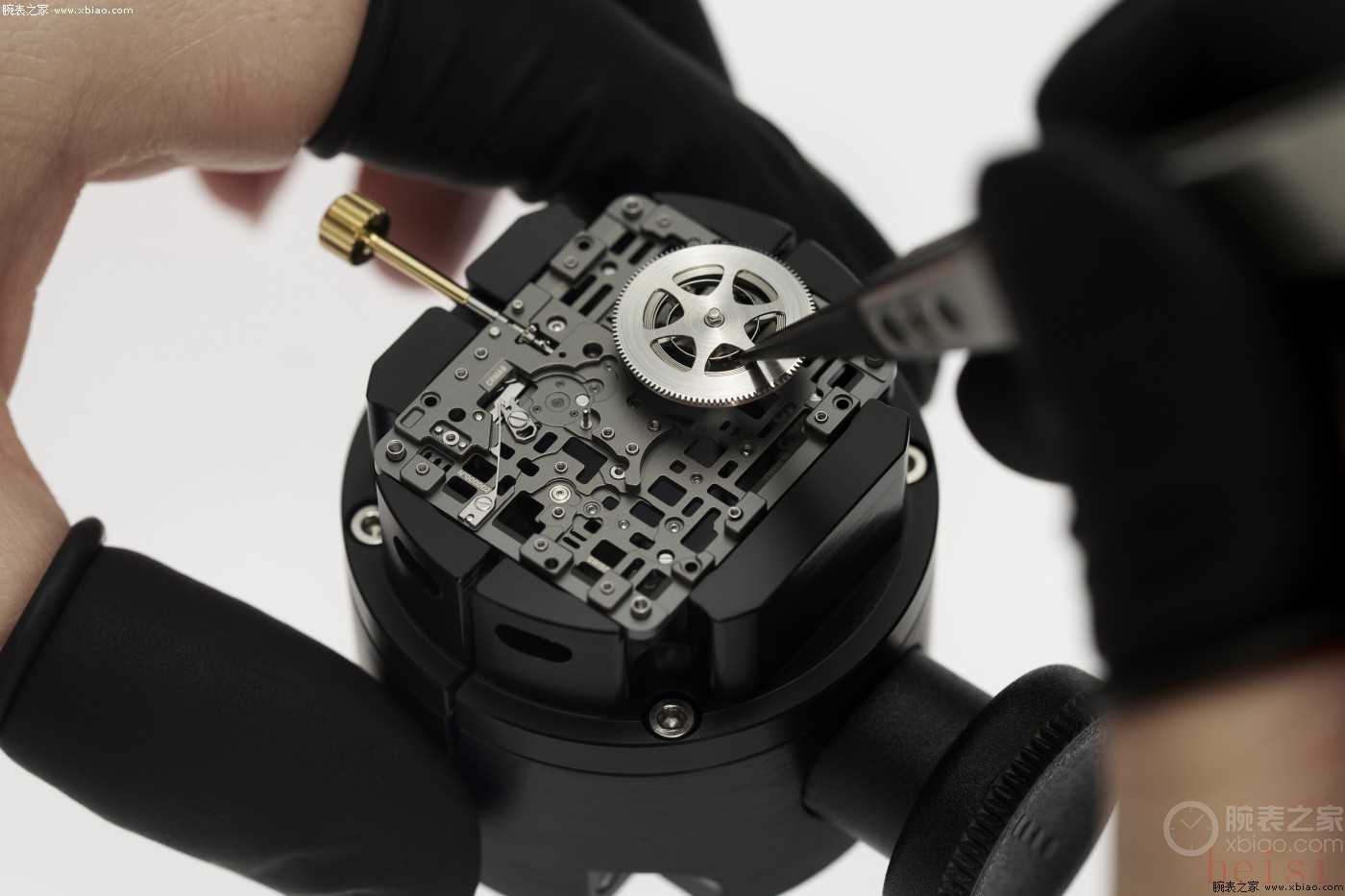 要做到“薄而耐用”,首先要打破傳統(tǒng)機(jī)芯的“堆疊思維”。過去的超薄機(jī)芯總在垂直方向壓縮零件,結(jié)果要么犧牲剛性,要么怕碰怕摔。RICHARD MILLE的工程師反其道而行,把原本要疊起來的齒輪、擒縱組件“攤”在更寬的平面上,讓機(jī)芯與表殼形成“共生關(guān)系”——表殼不再只是保護(hù)殼,而是和機(jī)芯共同承擔(dān)剛性,既壓薄了整體厚度,又保留了耐用性。