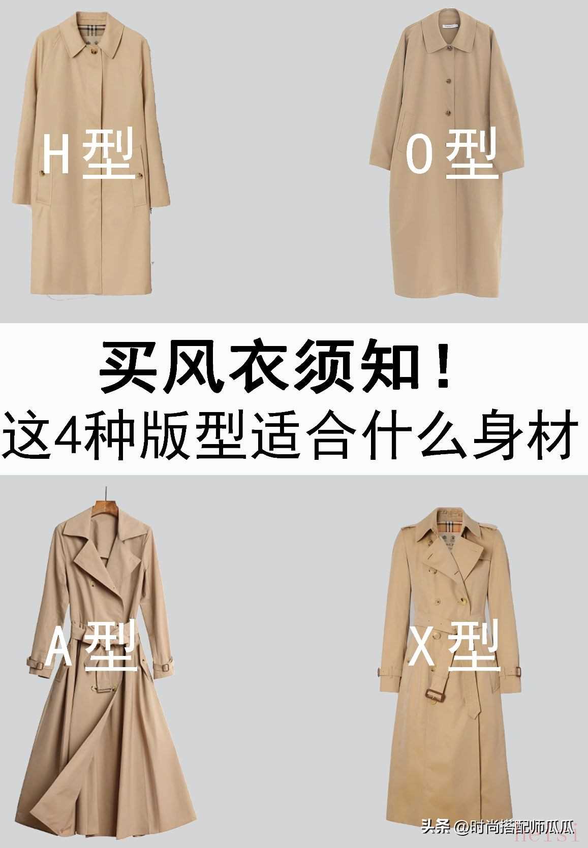 挑選風衣第一步,就是要看版型,學會根據(jù)身材選版型,才不會出錯!H型的風衣,線條感直上直下,百搭不挑人;X型的風衣,下擺比較隨意,中間采用收腰設(shè)計,更適合沙漏型身材。