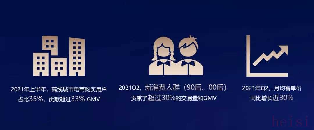 通過大搞品牌等平臺(tái)戰(zhàn)略驅(qū)動(dòng),2021年上半年,在快手電商上,高線城市電商購買用戶占比35%,貢獻(xiàn)超過33%的GMV;2021二季度,新消費(fèi)人群(90后、00后)貢獻(xiàn)了超過30%的交易量、交易額,月均客單價(jià)同比增長近30%。其中,00后貢獻(xiàn)交易額同比增長超過80%。