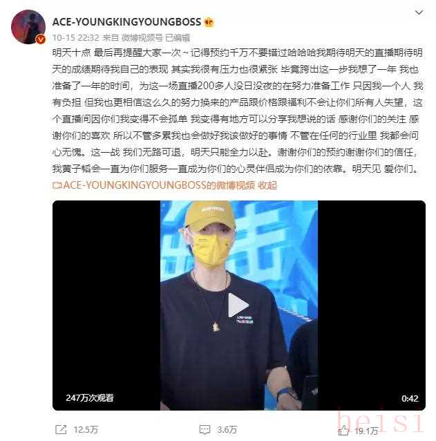 黃子韜在微博寫道,“跨出這一步我想了一年,也準(zhǔn)備了一年?!?/span>在快手直播間,他也透露,為了“對(duì)得起每一位消費(fèi)者”,自己利用在劇組空閑的時(shí)間,將團(tuán)隊(duì)選品逐一親自試用。