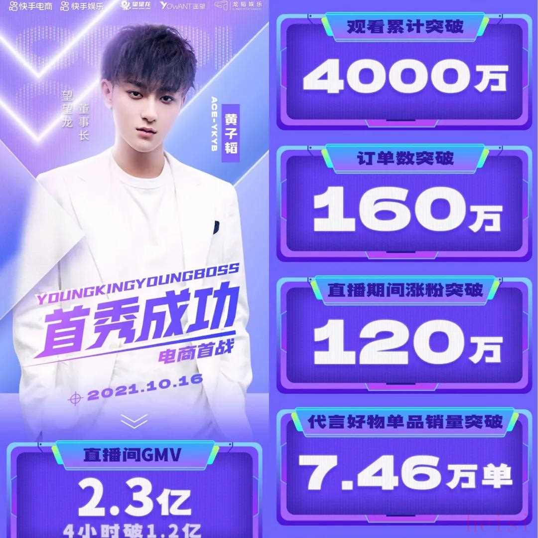 "核心事件:" 黃子韜在快手帶貨的首場直播取得了驚人的成績,銷售額達(dá)到了2.3億元。