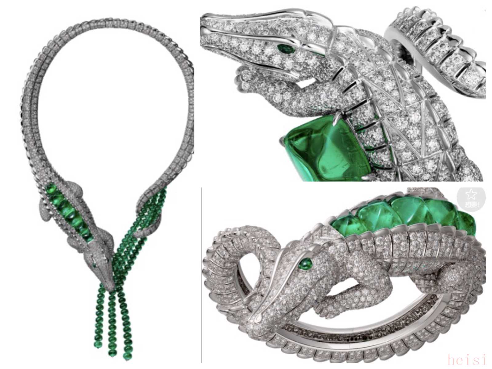 除了獵豹,鱷魚也是卡地亞的重要?jiǎng)游飯D騰。1975年,卡地亞為墨西哥女演員瑪莉亞?菲利克斯創(chuàng)造出一款鱷魚造型項(xiàng)鏈。去年11月,卡地亞再度致敬經(jīng)典,推出了全新的鱷魚造型高級珠寶?,斃騺?菲利克斯佩戴的項(xiàng)鏈?zhǔn)莾芍击{魚咬在一起,而這一次小鱷魚改了愛好,跟自己的尾巴較勁。