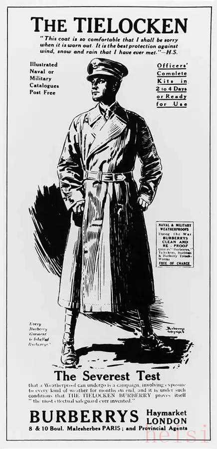 在第一次世界大戰(zhàn)之前,英國軍隊管理要求 Thomas 制作一個新版本的 Tielocken,這件雨風衣具備的特點基本就是 Burberry 風衣的經典樣式。