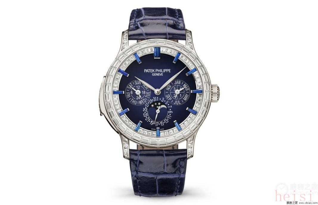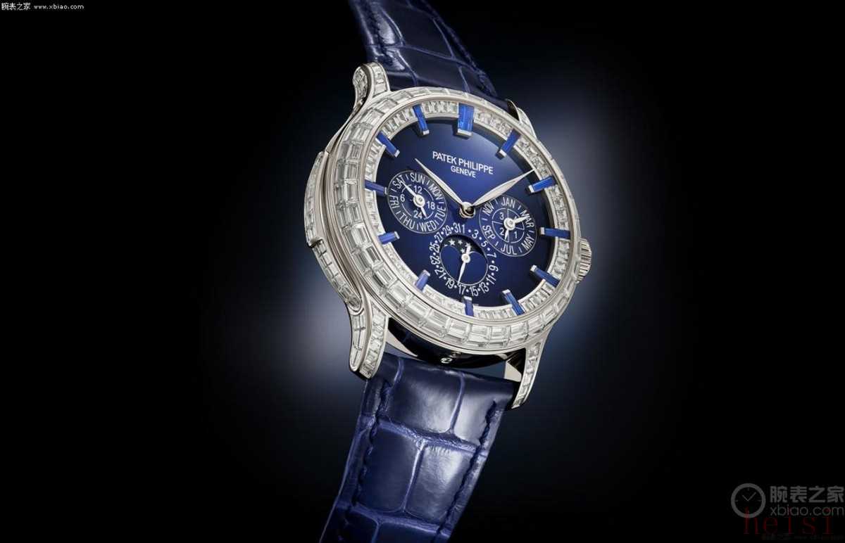 ▲百達(dá)翡麗的地位無須多言表殼,表圈,及表盤外緣,鑲滿長形鉆石,組成精致環(huán)形,并點(diǎn)綴長形藍(lán)寶石時標(biāo)。共計(jì)228顆長形鉆石(11.73克拉)以及13顆長形藍(lán)寶石(0.72克拉)。這一新穎設(shè)計(jì)在表盤周圍構(gòu)建出“圓形劇場”,營造迷人的深邃立體感。