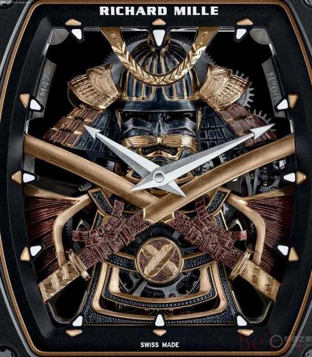 里查德米爾動輒百萬起,被稱為“百萬富翁的入場券”,近年來成為富二代的標(biāo)配。全透明的藍(lán)寶石表殼,非常具有自己的特點(diǎn)。RM之前推出過很多盤面雕刻的手表,從龍鳳到宇航員,今年則推出了日本武士鎧甲。