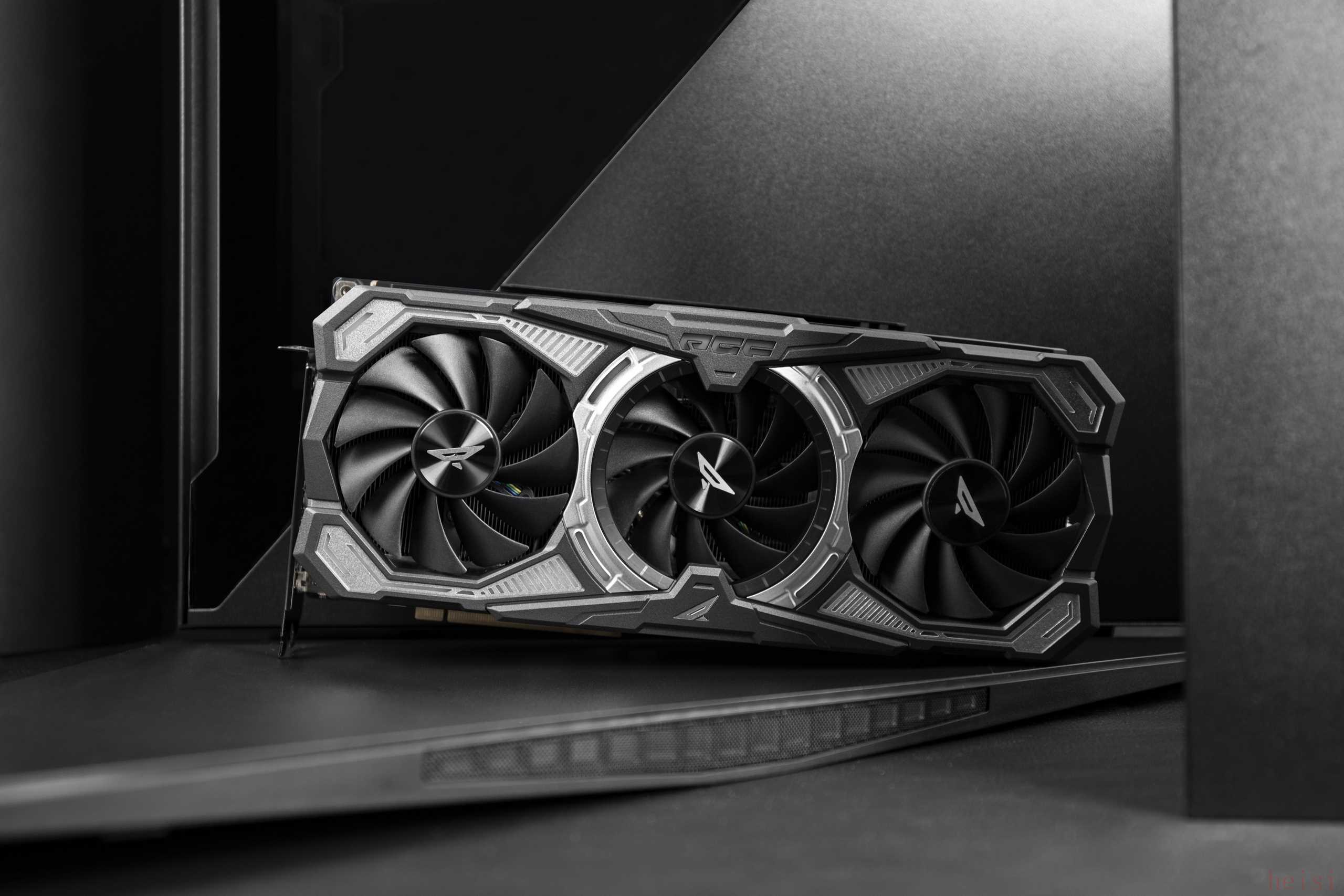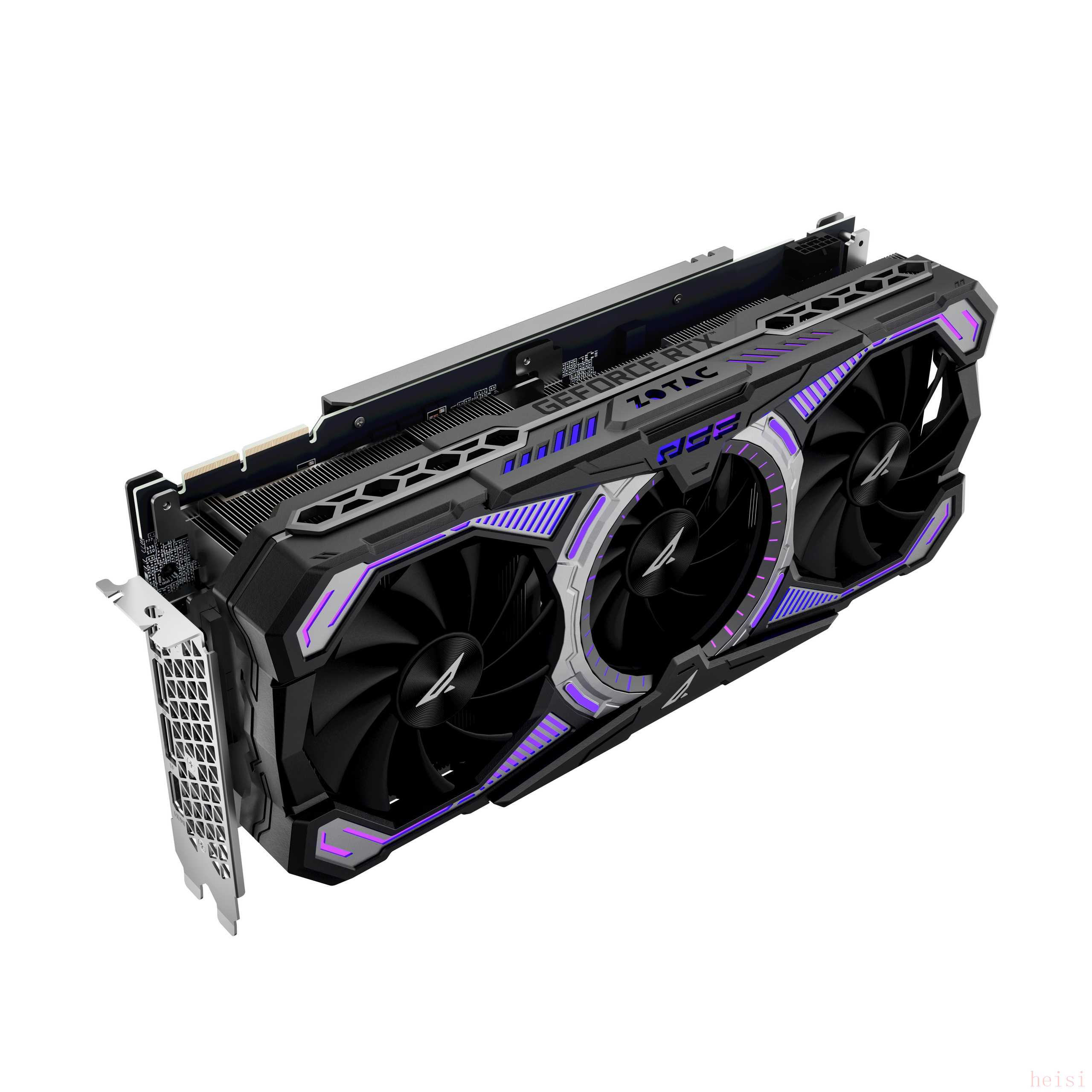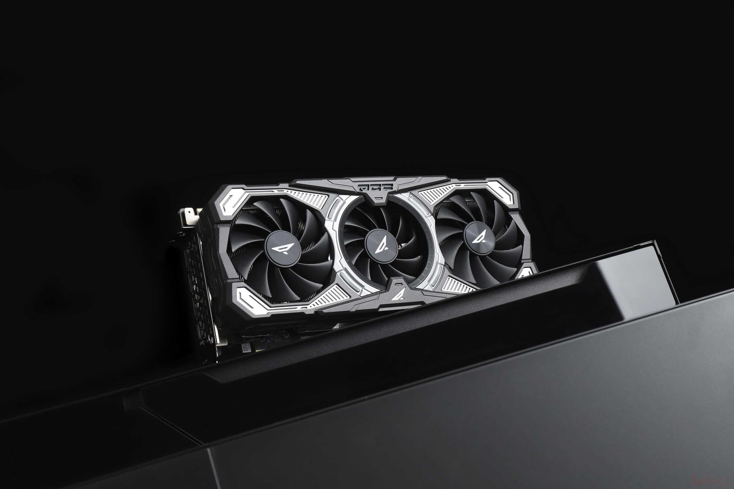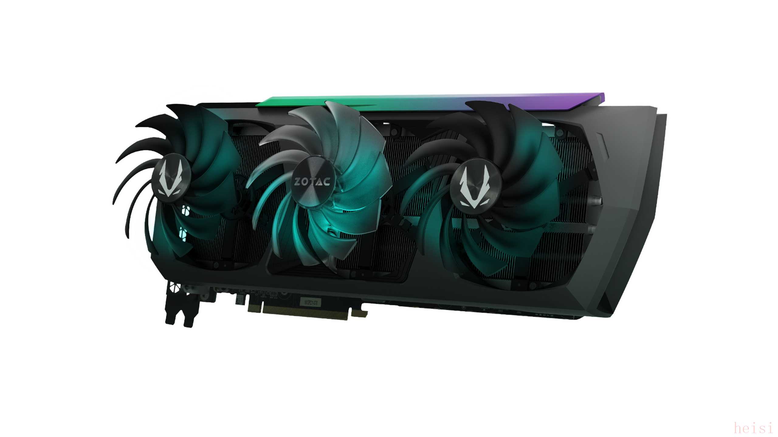 顯卡正面則配置了3個(gè)10cm的大尺寸風(fēng)扇,風(fēng)扇扇葉多達(dá)11片,比上一代風(fēng)扇增加了10%以上的氣流,帶來更強(qiáng)的風(fēng)壓和風(fēng)流,實(shí)現(xiàn)無死角風(fēng)流覆蓋,可以配合顯卡內(nèi)部散熱部件達(dá)到更加出色的散熱效果。