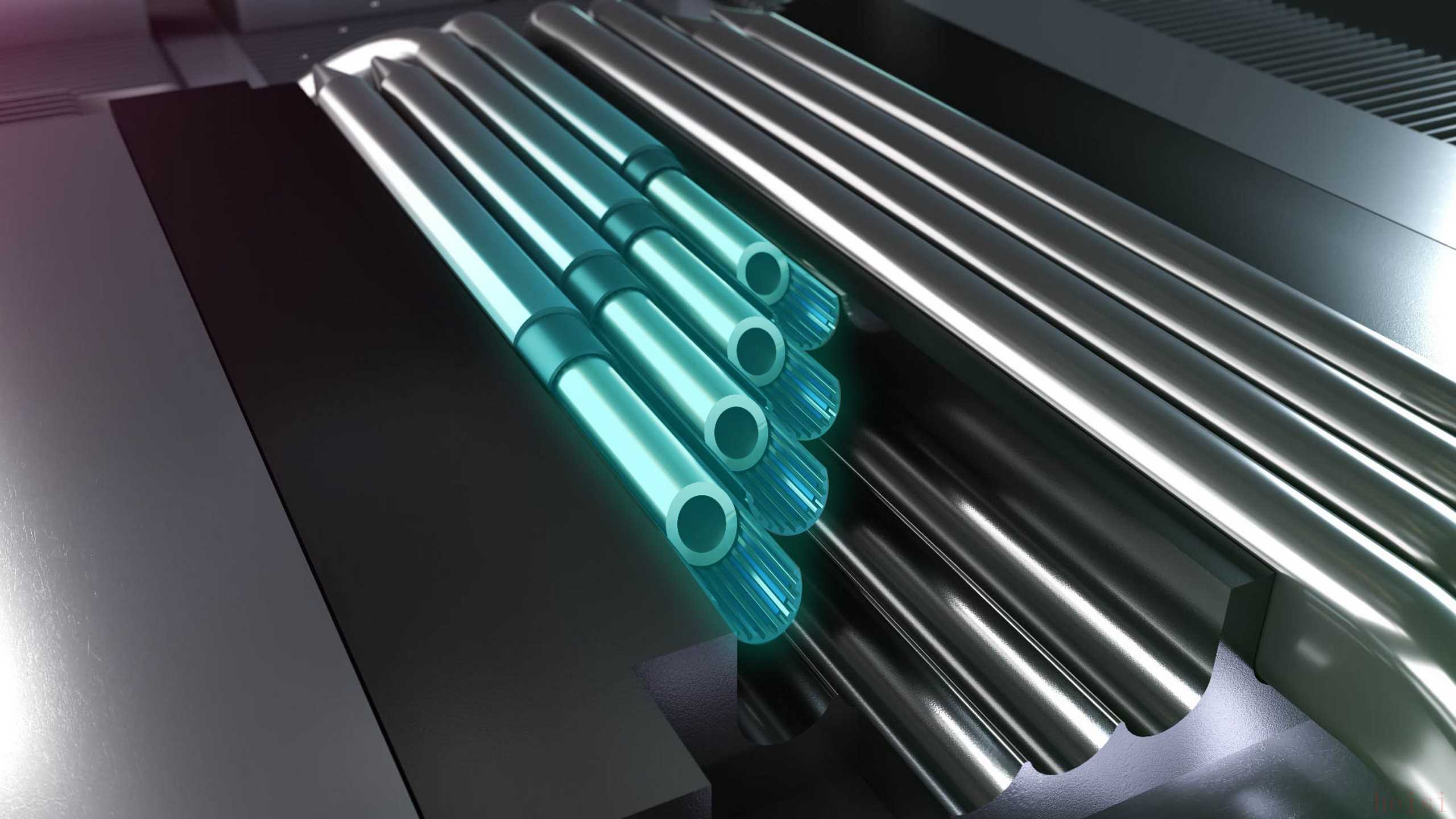散熱方面,同樣堆料十足,在索泰RTX 3090Ti AMP EXTREME HOLO顯卡的內(nèi)部,采用了大面積VC均熱板導(dǎo)熱,利用無損內(nèi)嵌技術(shù)將8根圓柱形冰脈熱管緊密嵌入其中,搭配全覆蓋的加厚鍍鎳鰭片,達(dá)到更快速、均勻、高效的導(dǎo)熱效能。
