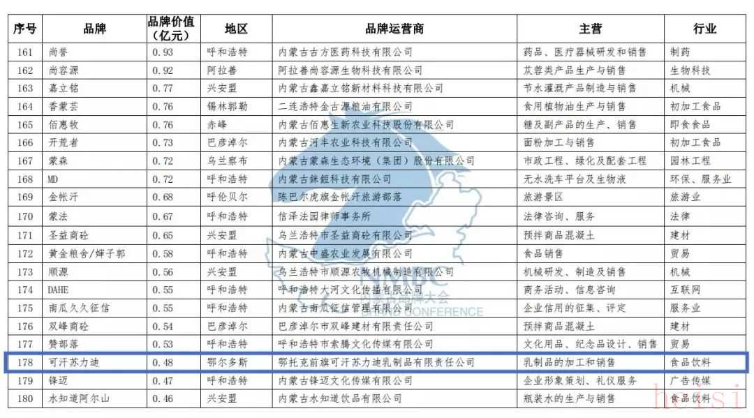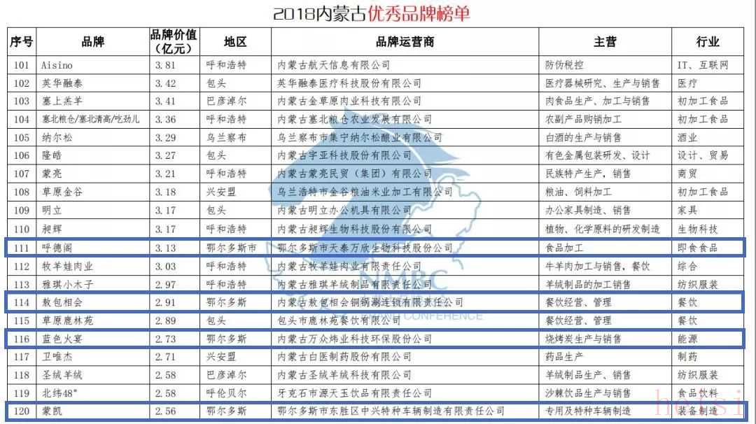 2018內(nèi)蒙古百強(qiáng)品牌榜單