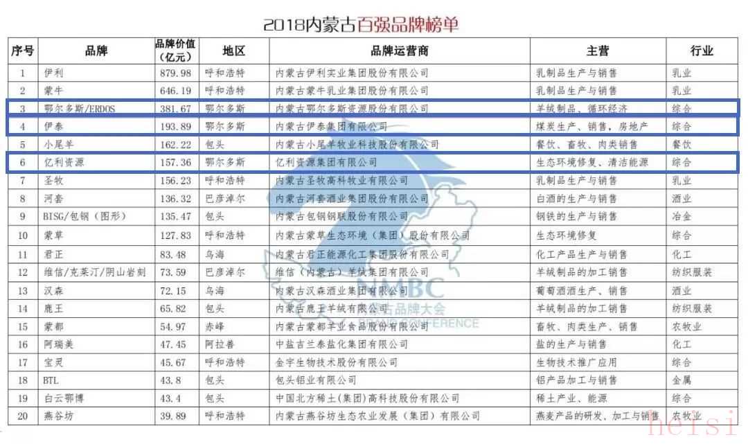 根據(jù)相關(guān)報(bào)道,2018年內(nèi)蒙古百強(qiáng)品牌榜已經(jīng)出爐,鄂爾多斯市表現(xiàn)優(yōu)異,共有"6個(gè)品牌"成功上榜。這充分展示了鄂爾多斯在品牌建設(shè)方面的顯著成果和綜合實(shí)力。
