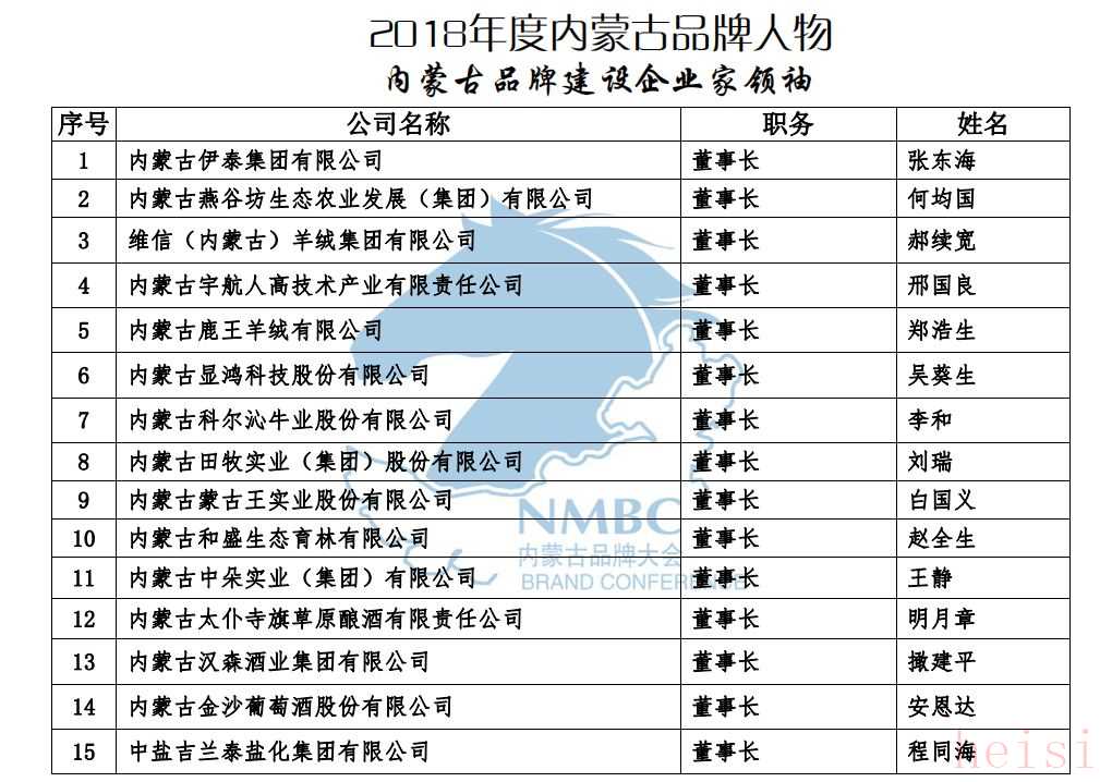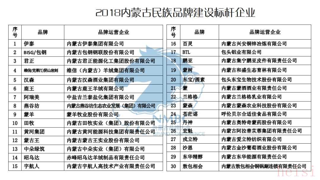 2018內(nèi)蒙古優(yōu)秀品牌榜單
