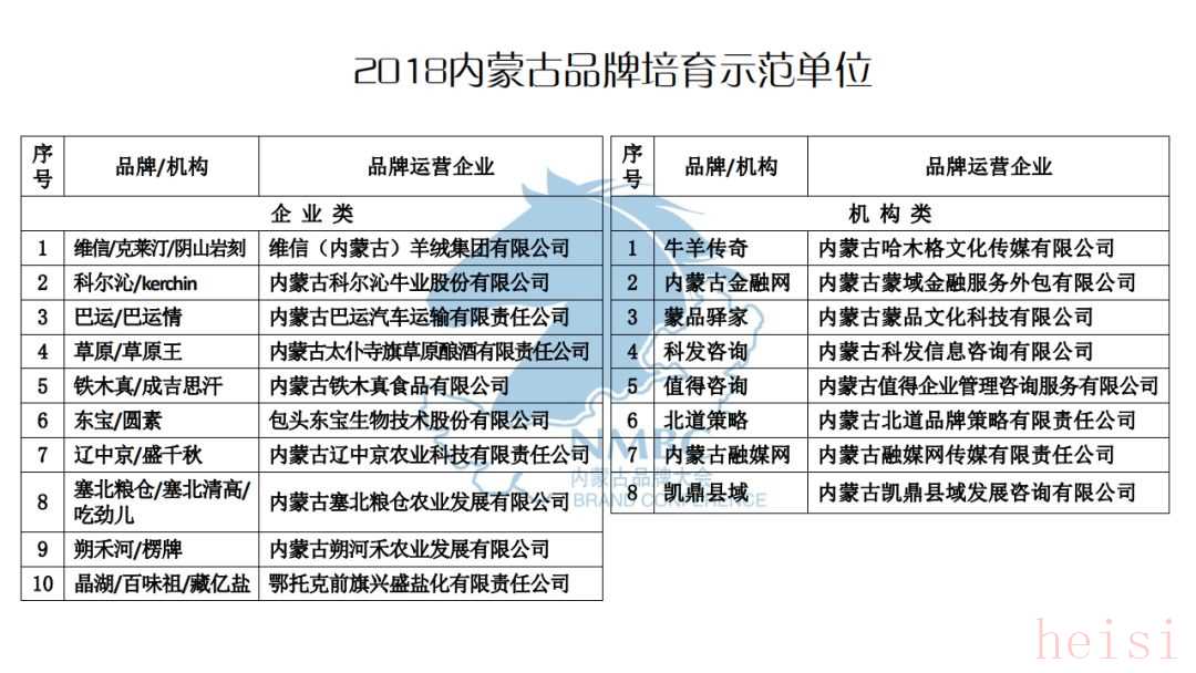 2018內(nèi)蒙古品牌培育示范單位
