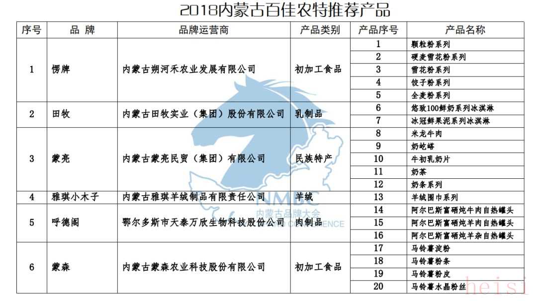2018內(nèi)蒙古百佳農(nóng)特推薦產(chǎn)品