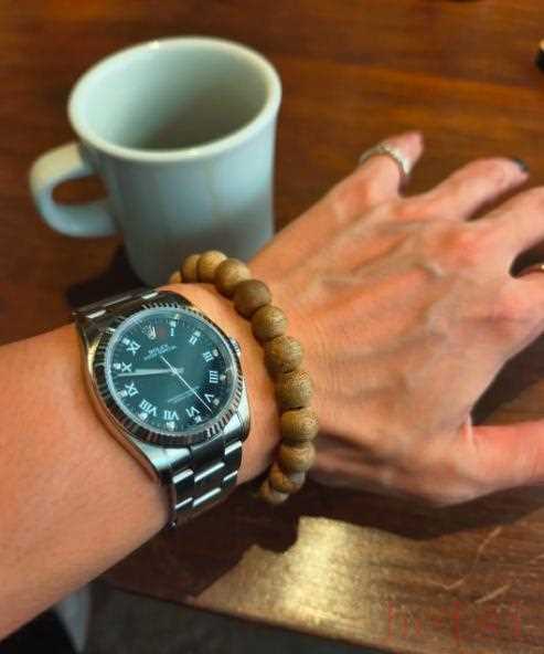 左手腕加一條深色檀木串,木頭溫度貼著脈搏,提醒自己別浮躁。