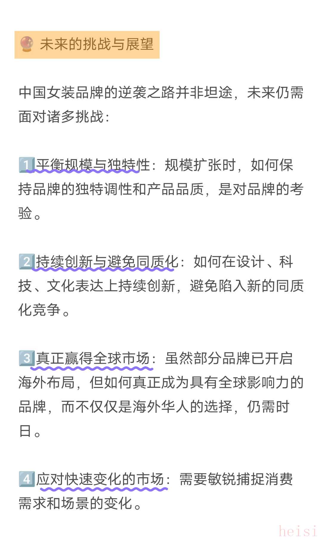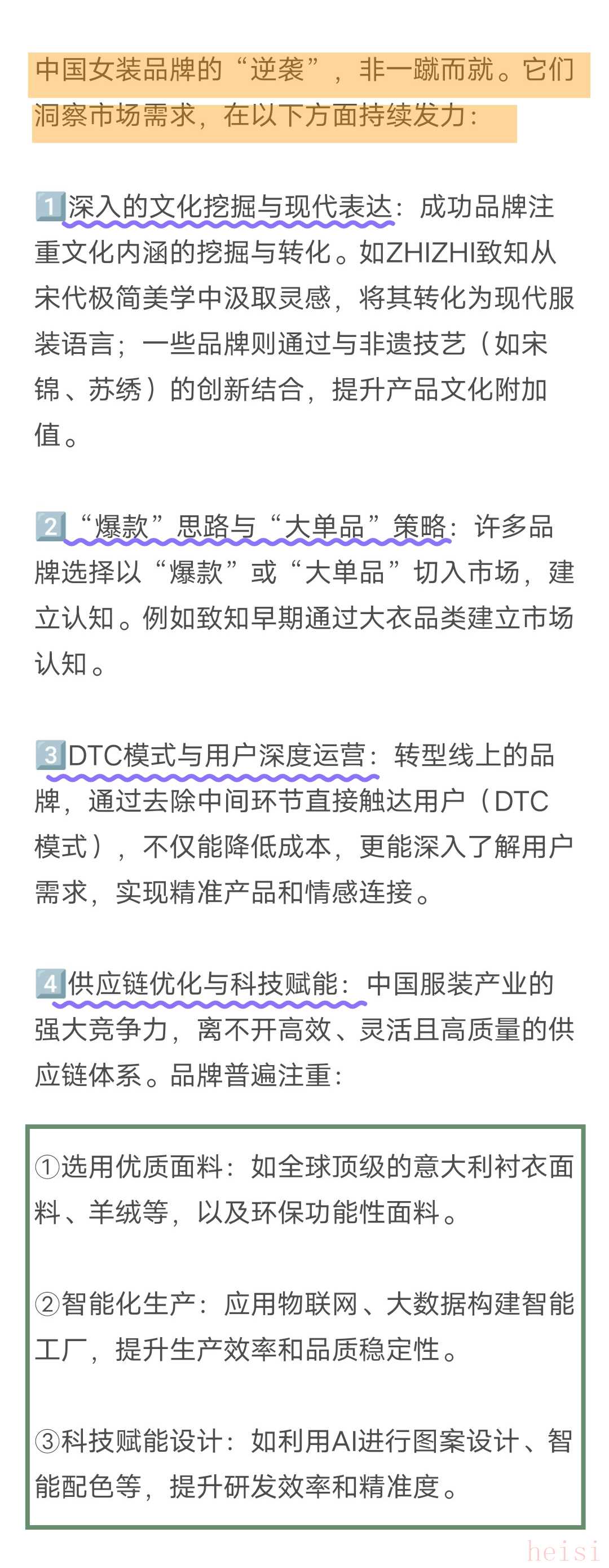 "中國女裝品牌逆襲之路:"  強(qiáng)調(diào)了中國女裝品牌從最初的代工生產(chǎn)到逐漸走向自主設(shè)計(jì)和品牌化,并在國際市場上取得一定成績的過程。