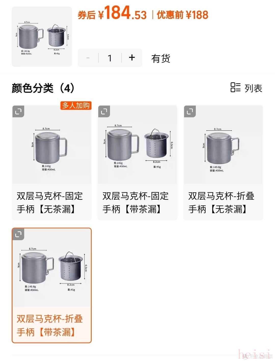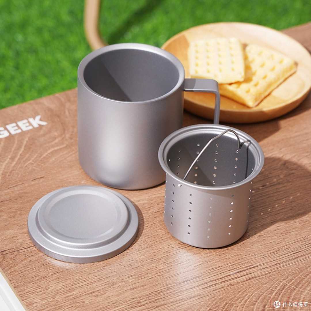 雙層的鈦杯價格一直很高,因為它的工藝確實是比較難,但是由于鈦金屬傳熱性特別強,如果你用單層的鈦杯來喝水,沒有把手絕對會分分鐘燙的你懷疑人生!這一套雙層鈦杯加上過濾網(wǎng)加上蓋子的組合,我覺得就非常適合個人solo或者是小范圍的這種喝茶場景!