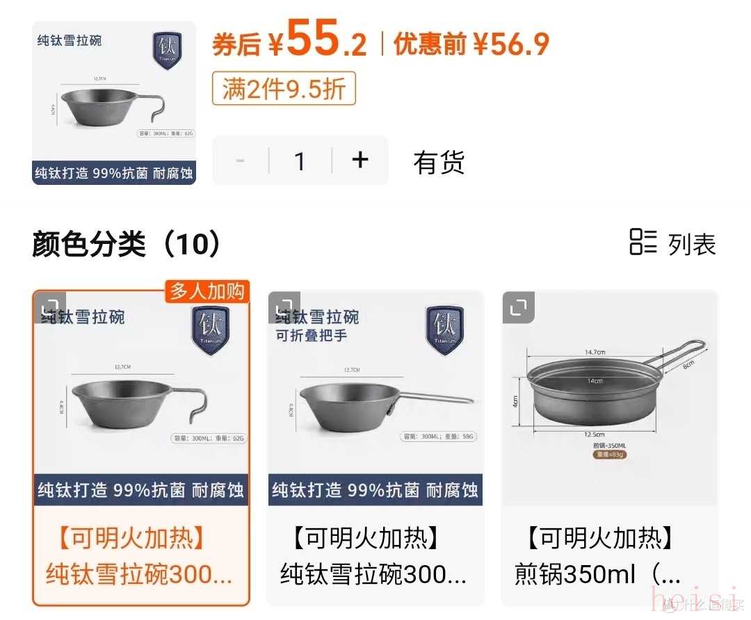 雪拉碗也是我的最愛,特別好用,特別好清洗,不過我有一點后悔的就是剛?cè)肟拥臅r候我買了10多個不銹鋼的雪拉碗,導(dǎo)致我現(xiàn)在用都用不完,還沒有去更換純鈦的雪拉碗,現(xiàn)在純鈦的雪拉碗價格都已經(jīng)下來了,真的適合入手幾個試試看,別說在露營時候用,自己在家里面用都很方便,很好清洗!