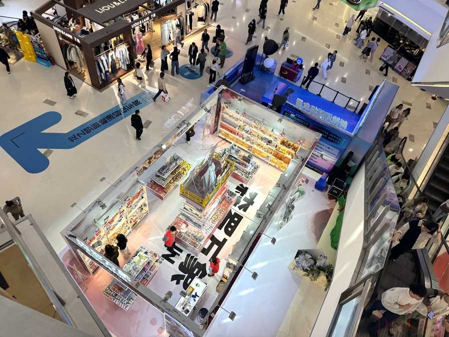 在龍之夢(mèng)中庭,4月新開(kāi)業(yè)的森羅萬(wàn)象國(guó)漫IP展內(nèi),售賣哪吒、卡皮巴拉、迪斯尼瘋狂動(dòng)物城、時(shí)光代理人、天官賜福等熱門IP的正版授權(quán)商品,玩偶、手伴、文創(chuàng)等不一而足。“電影《哪吒2》人氣火爆,春節(jié)后我們便馬上對(duì)接IP公司,策劃快閃店和產(chǎn)品,用時(shí)一個(gè)多月就完成了產(chǎn)品開(kāi)發(fā)、生產(chǎn)、運(yùn)輸以及店鋪選址、搭建和推廣?!敝猩焦珗@龍之夢(mèng)市場(chǎng)運(yùn)營(yíng)總監(jiān)鞠正芳說(shuō)。