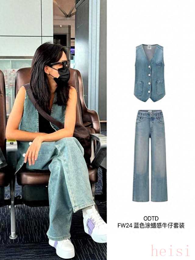 牛仔馬甲搭闊腿褲,辛芷蕾把機(jī)場走成了她的T臺,下一秒照片全網(wǎng)瘋傳,熱搜直接掛上“牛仔套裝”。