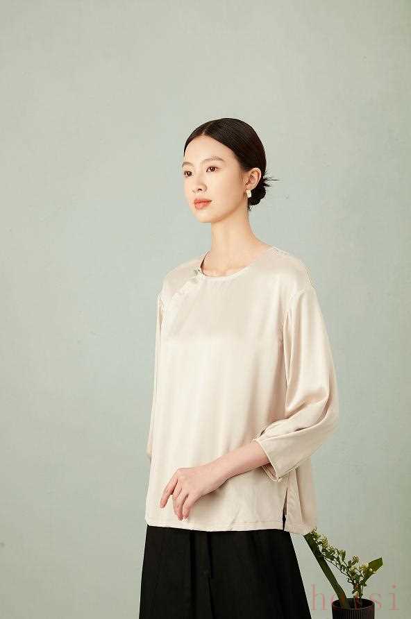 ——新中式圓領(lǐng)燈籠袖真絲上衣