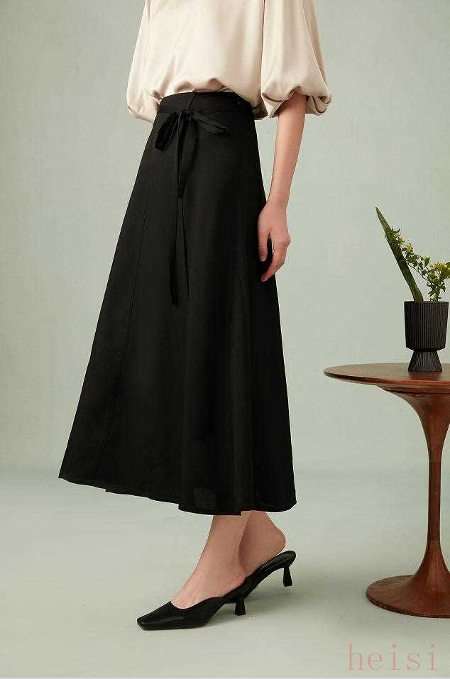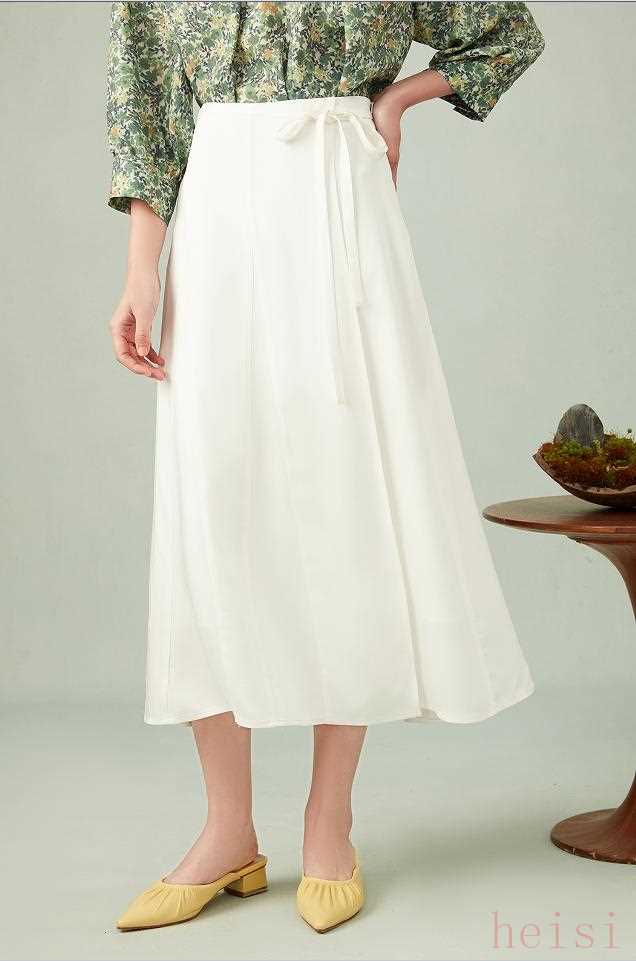 醋酸面料,垂感和抗皺性好。仿裹裙設(shè)計(jì)制成的前門(mén)襟,疊加細(xì)繩腰帶層次感十足,垂帶飄逸靈動(dòng)。