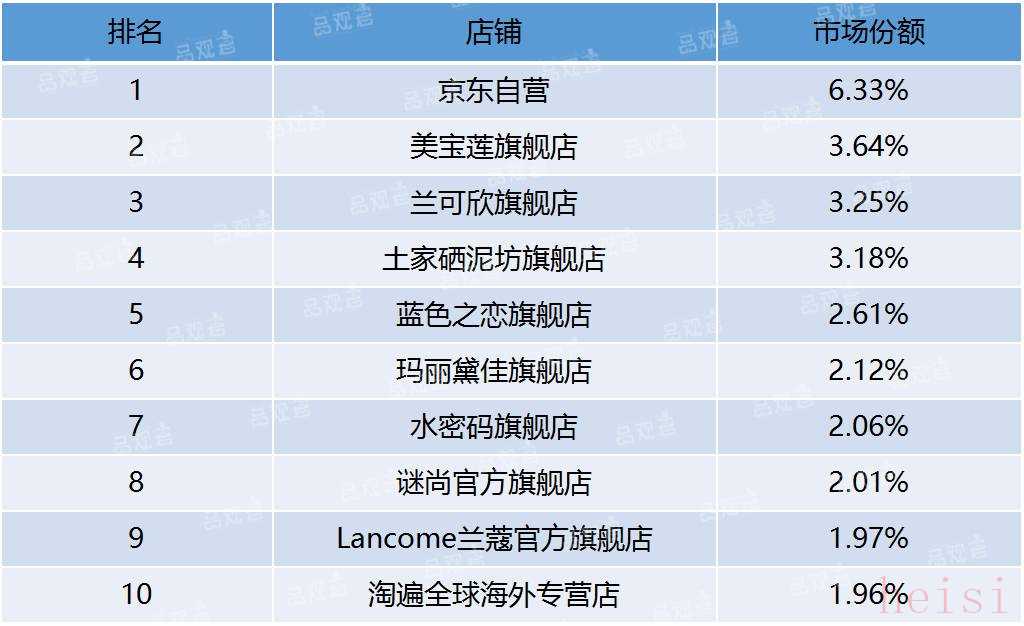 為了購買到放心的產(chǎn)品,天貓(包括品牌的天貓旗艦店)和京東自營兩大平臺是消費者線上購物的首選,其中天貓在市場份額以及銷量占比上都有著壓倒性優(yōu)勢(畢竟人家也是有超過3000家美妝品牌入駐的平臺)。有意思的是,在市場份額排名前十的線上店鋪中,蘭蔻官方旗艦店排名第九,淘遍全球海外專營店排名第十。