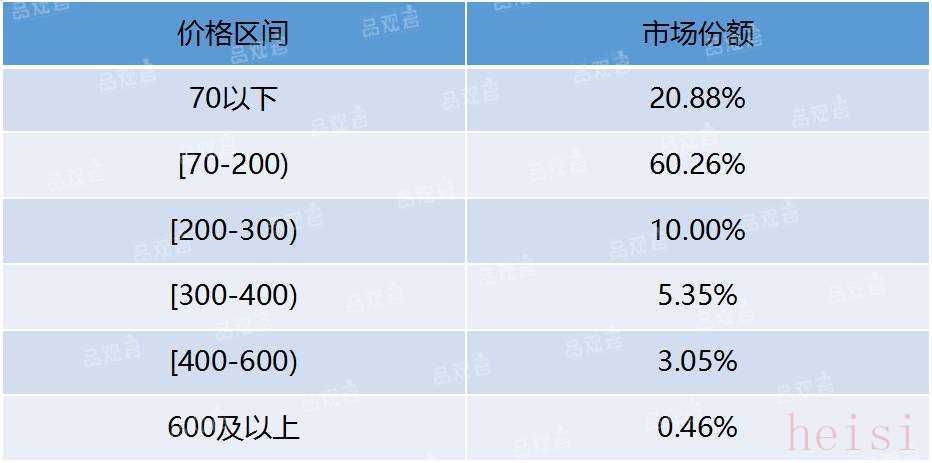 從上表中可以看到,200元以內(nèi)的產(chǎn)品占去了81.14%的市場份額,銷量占比則高達94.62%,幾乎處于壟斷地位;400元以上甚至600元以上的BB霜在線上不太受歡迎。