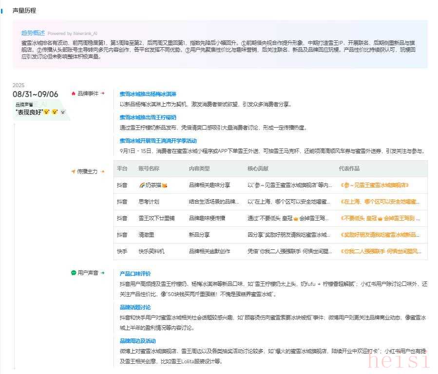 新榜品牌榜觀察到蜜雪冰城上周的品牌動作: