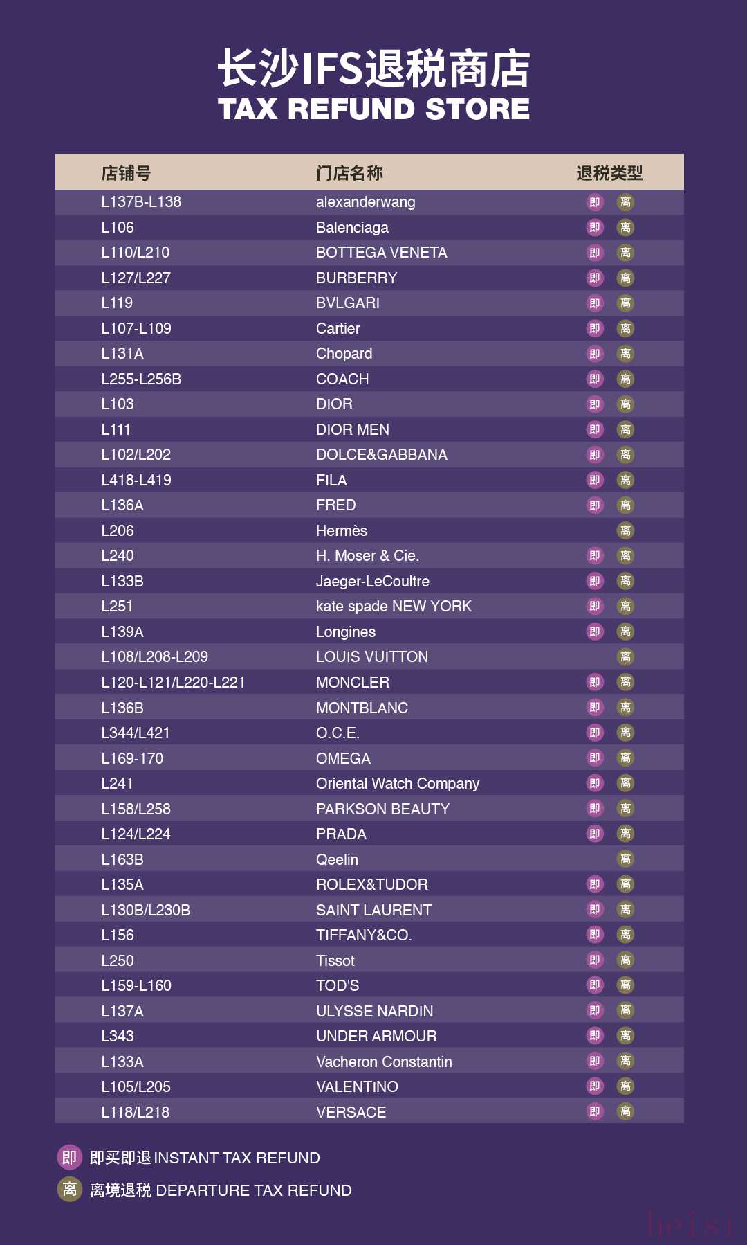 根據(jù)您提供的信息,長沙IFS(國際金融中心)的部分品牌可以享受“即買即退”的離境退稅服務(wù),并且退稅比例為9%。這意味著,當(dāng)您在長沙IFS購買特定商品并符合離境退稅條件時,可以退還所購商品價格的9%作為稅額。
