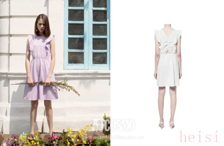 在設(shè)計(jì)方面,簡(jiǎn)單鮮明的線條加上復(fù)古的造型使b+ab更具特色,這條簡(jiǎn)約大氣荷葉邊連衣裙就是很典型的B+AB。