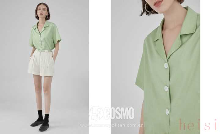 利落而簡(jiǎn)潔的剪裁也是Fano STUDIOS備受青睞的原因之一。COCO強(qiáng)烈推薦這款署了夏天姓名的淺綠色純色襯衫。H型的大身加了一些落肩設(shè)計(jì),點(diǎn)綴干凈的白色貝殼扣,帥氣清新又清涼舒適~