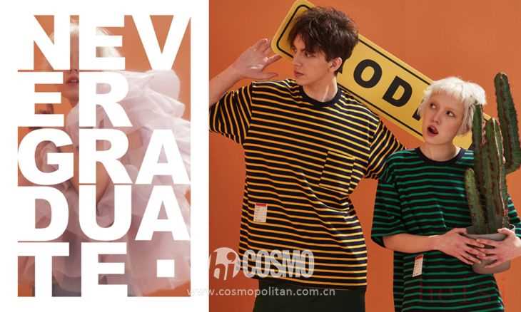 時(shí)髦精經(jīng)常pick的單品是這款“never graduate”復(fù)古條紋T,Meadowlark 草地云雀黃 & Arcadia世外桃源綠。永不畢業(yè)、永遠(yuǎn)年輕!