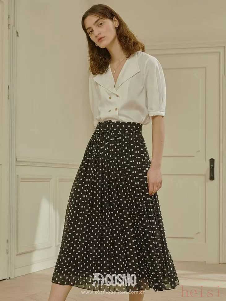 近期HiShop最受歡迎的半裙單品就是它家這條法式波點(diǎn)半身裙~復(fù)古系的波點(diǎn)配合垂墜感十足的輕紗風(fēng)琴褶,浪漫又優(yōu)雅。