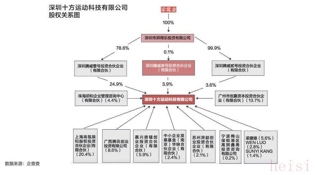 企查查官網(wǎng)數(shù)據(jù)顯示,2021 年 5 月,深圳十方正式成立。其中,深圳騰威壹號(hào)投資合伙企業(yè)(有限合伙)為大股東,持股比例為 24.9%,高瓴資本、騰 訊投資、鐘鼎資本、高鵠資本等知名頭部 VC 也都參與了對(duì)深圳十方的早期投資。除此之外,國(guó)內(nèi)有著 32 年歷史的自行車(chē)龍頭企業(yè)——廣州市千里達(dá)實(shí)業(yè)集團(tuán) (TRINX,以下簡(jiǎn)稱(chēng)“千里達(dá)”)董事長(zhǎng)梁建雄也在深圳十方的股東名單中,持股比例為 5.6%。